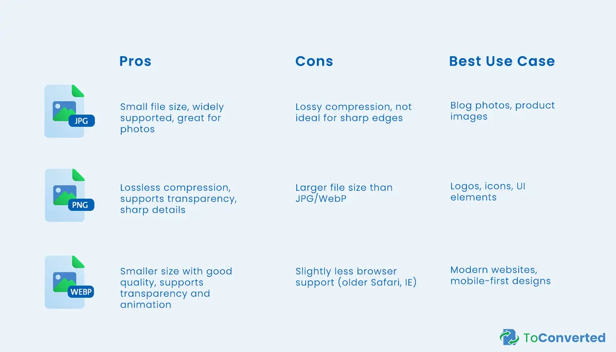 JPG vs PNG vs WebP: Pros and Cons